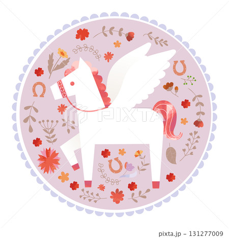手描きのかわいいペガサスのフレーム 2026 正月素材 パステルカラー