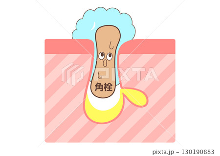 洗顔時の角栓の様子を漫画調に表した断面イラスト