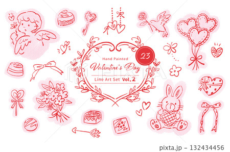 かわいいバレンタインの手書き線画ベクターイラストセット