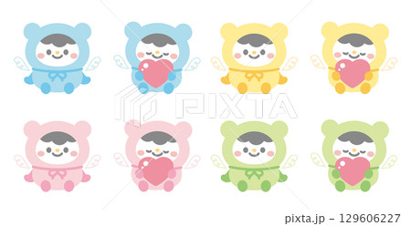 ゆるくてかわいい天使の子ども達とバラのイラストセット
