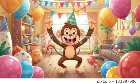 ホームパーティーを楽しむ猿