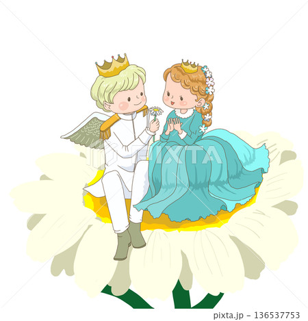 妖精の王子が親指姫に花を贈る