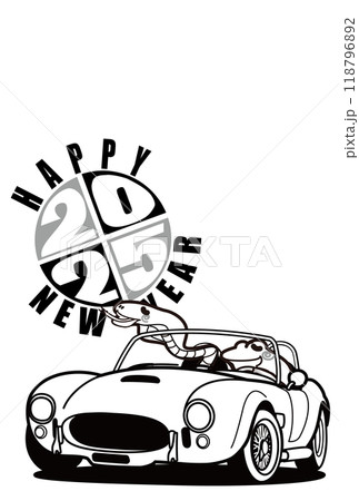2025年年賀状 テンプレート 干支とアメリカンオープン ぬり絵風