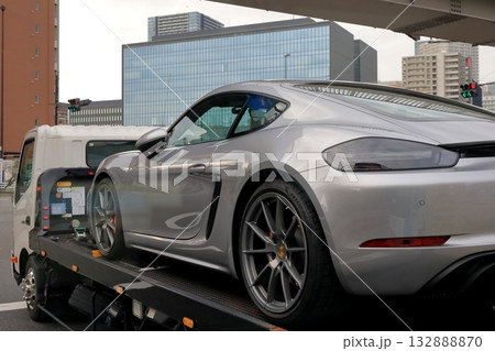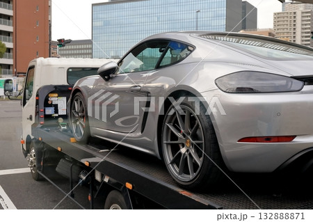 スポーツカーを搬送中のキャリアカー イメージ