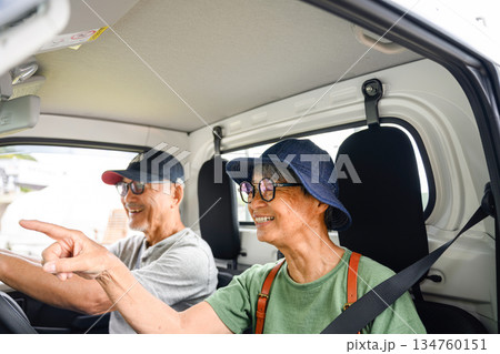 高齢夫婦が軽トラックで移動 【撮影協力:隠岐