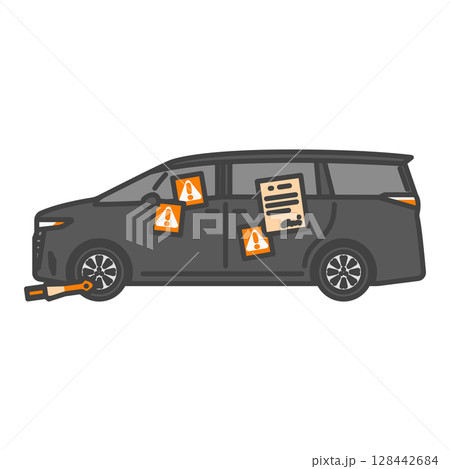 イラスト素材:警告ステッカーが貼られた白い高級ミニバン(駐車違反・駐車禁止・駐禁)