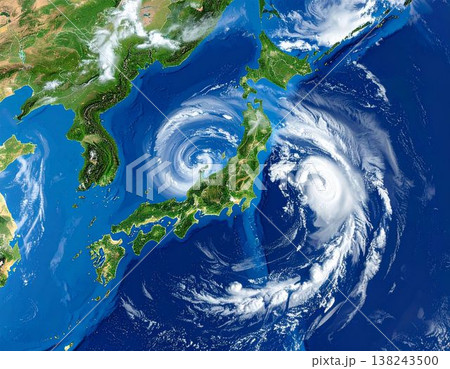 台風のイメージの日本地図(ai生成画像)