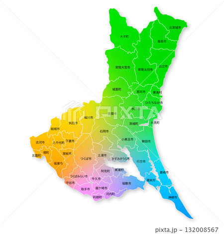 関東地方の都道府県テキストベクター素材 | バラバラの文字, 色変更可能, パス分解