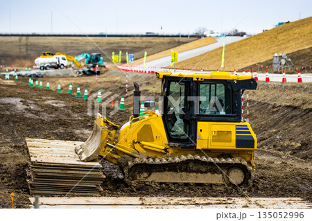 工事現場の重機ブルドーザー