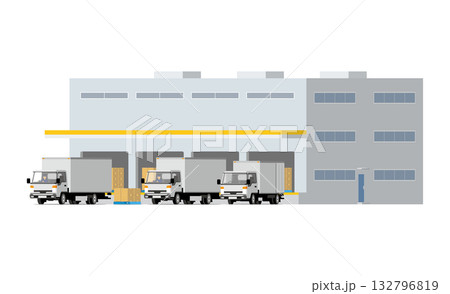 荷物を運ぶトラックなどのアイソメベクターイラスト素材