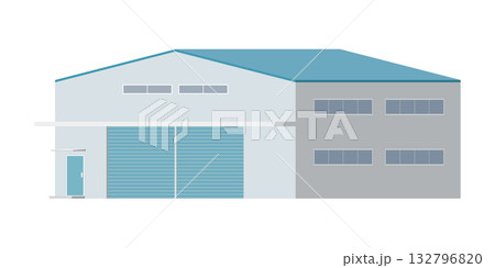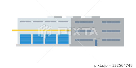 倉庫や工場、トラックやフォークリフトなどのベクターイラスト素材/工場/倉庫/運搬/運送/シンプル/シ