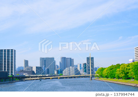 日本の東京都市景観 ブルーフロント芝浦などを望む
