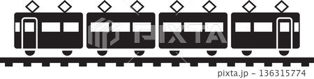 電車の横向きのシンプルなモノクロイラスト