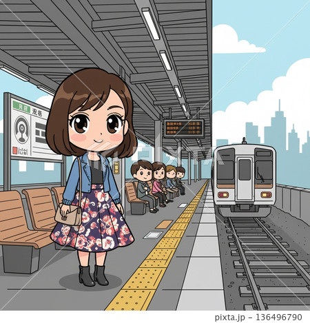 電車を待つ女性
