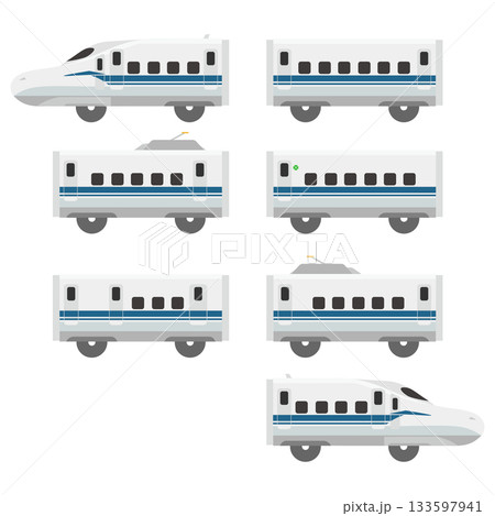 おもちゃ風の新幹線N700Sのイラスト(7両セット)