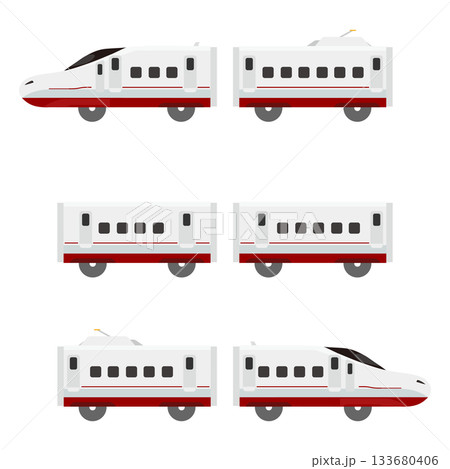 おもちゃ風の新幹線E6系のイラスト5両セット