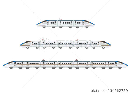 おもちゃ風の新幹線E5系の3両つなげたイラスト