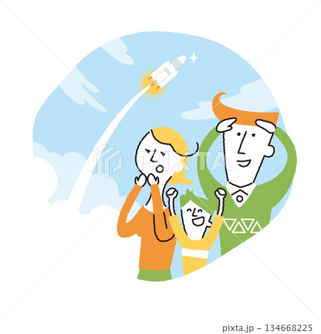 最新型スペースロケットの発射プロセス 手描きイラスト