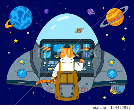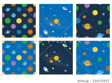 宇宙と天体の手描きイラストステッカーセット 惑星や宇宙開発をテーマにしたベクター素材