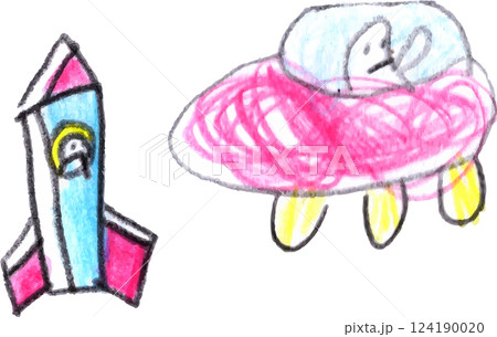 子供が描いたロケットとUFO