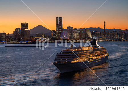 《神奈川県》横浜みなとみらいの夜景と出港する豪華客船