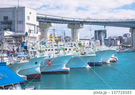「青森県」第二魚井市場に停泊する漁船 八戸市