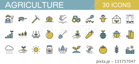 農業に関するアイコンセット カラー
