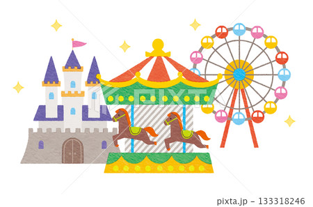 カラーのテーマパーク関連イラストアイコンセット