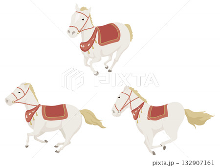 レトロでアンティークな陶器製の馬のカルーセルのベクターイラストカラーバリエーションセット