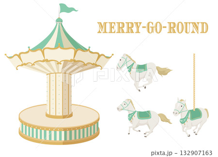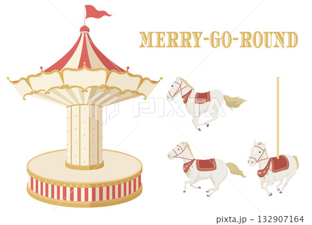 レトロかわいいメリーゴーランドのフラットデザインイラスト/チラシやポスター用素材