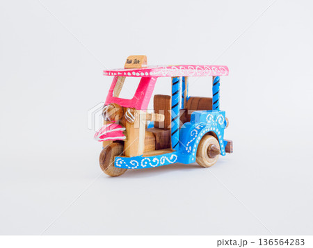 タイのトゥクトゥクの木製ミニチュア 白背景のスタジオ撮影