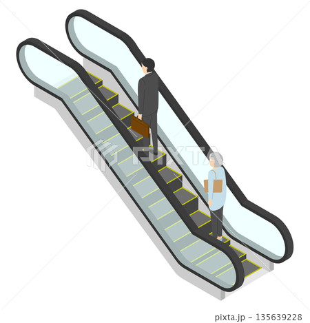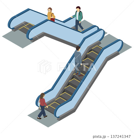 アイソメトリックイラスト:エスカレーターを使う人々