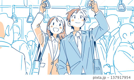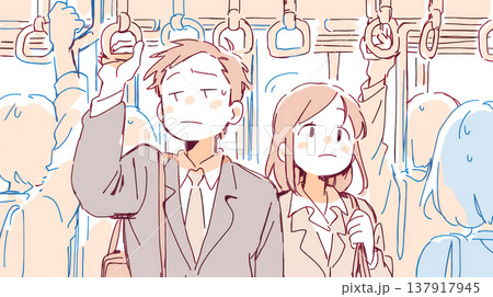 満員電車で通勤する共働きの若い夫婦