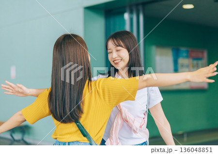 空港で再会する女性友達 「撮影協力:関西国際空港(KIX)」