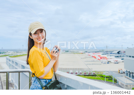 旅行中の女性が景色を眺める ■撮影協力:関西国際空港(KIX)