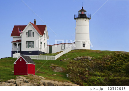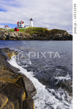 USA, Maine, York, Cape Neddick, Nubble Light lighthouse at seashore