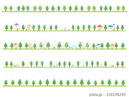 郊外の街並みのイラスト. アイソメ図で描いた都市.