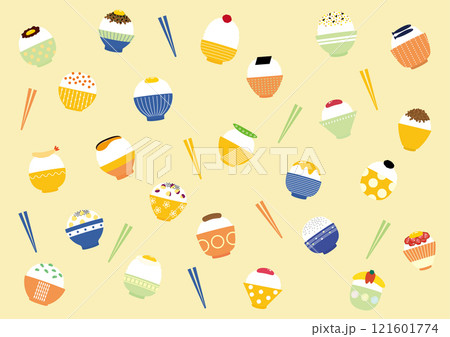 ランダムに並んだどんぶりご飯の背景素材