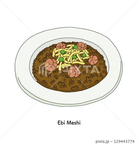 岡山名物 えび飯のイラスト_線画
