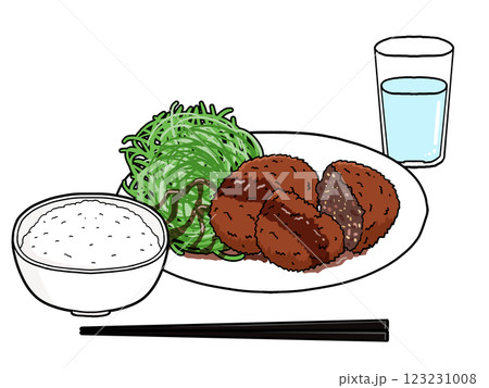 メンチカツ定食のイラスト