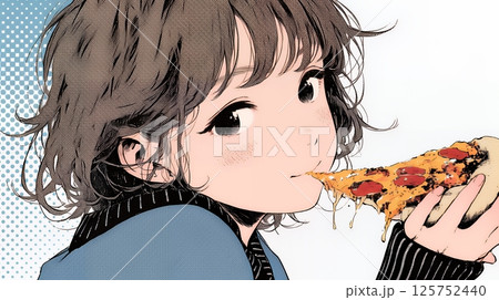 ピザを食べている若い女性