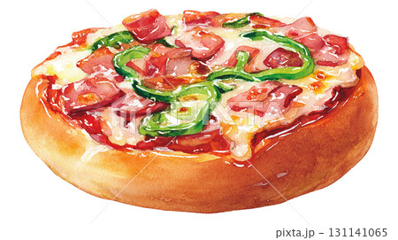 ピザ サラミとピーマン チーズ トマト 定番メニュー イラスト PNG切り抜き