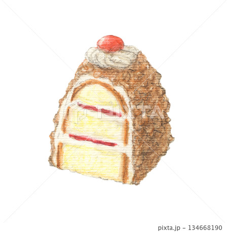 ホイップクリーム付きシフォンケーキ 水彩イラスト PNG 透過背景