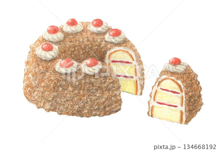 チェリージャム入りガトーバスク 水彩色鉛筆イラスト