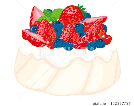 【食べ物イラスト素材】フルーツケーキの手描きベクターイラスト