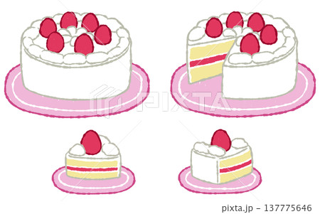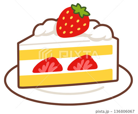 いちごのショートケーキの手描きのシンプルなカラーイラスト
