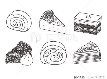 いろんなケーキの手描きイラストセット(モノクロ)