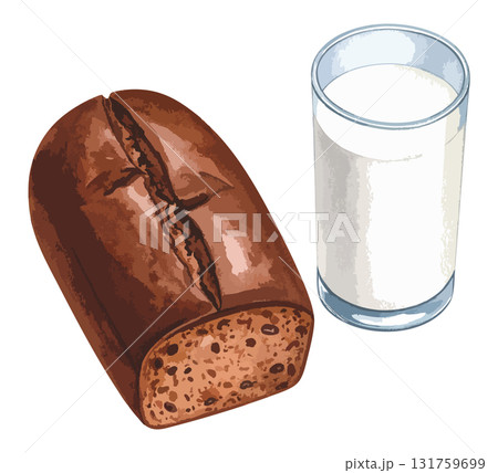 チョコケーキと牛乳の水彩風イラストセット 生成AI