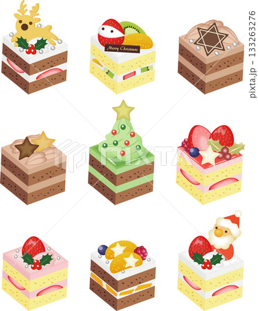 お皿に乗せたクリスマスケーキ2種のイラスト