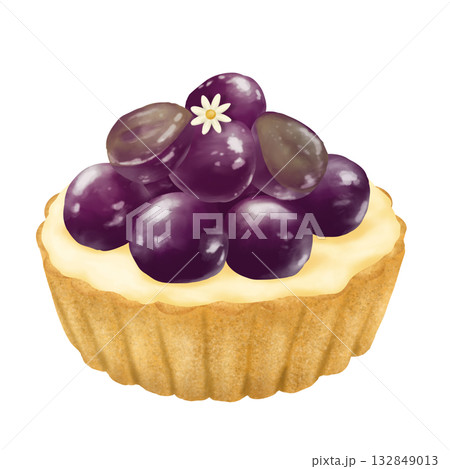 ぶどうとマスカットのタルトケーキのカラフルイラスト